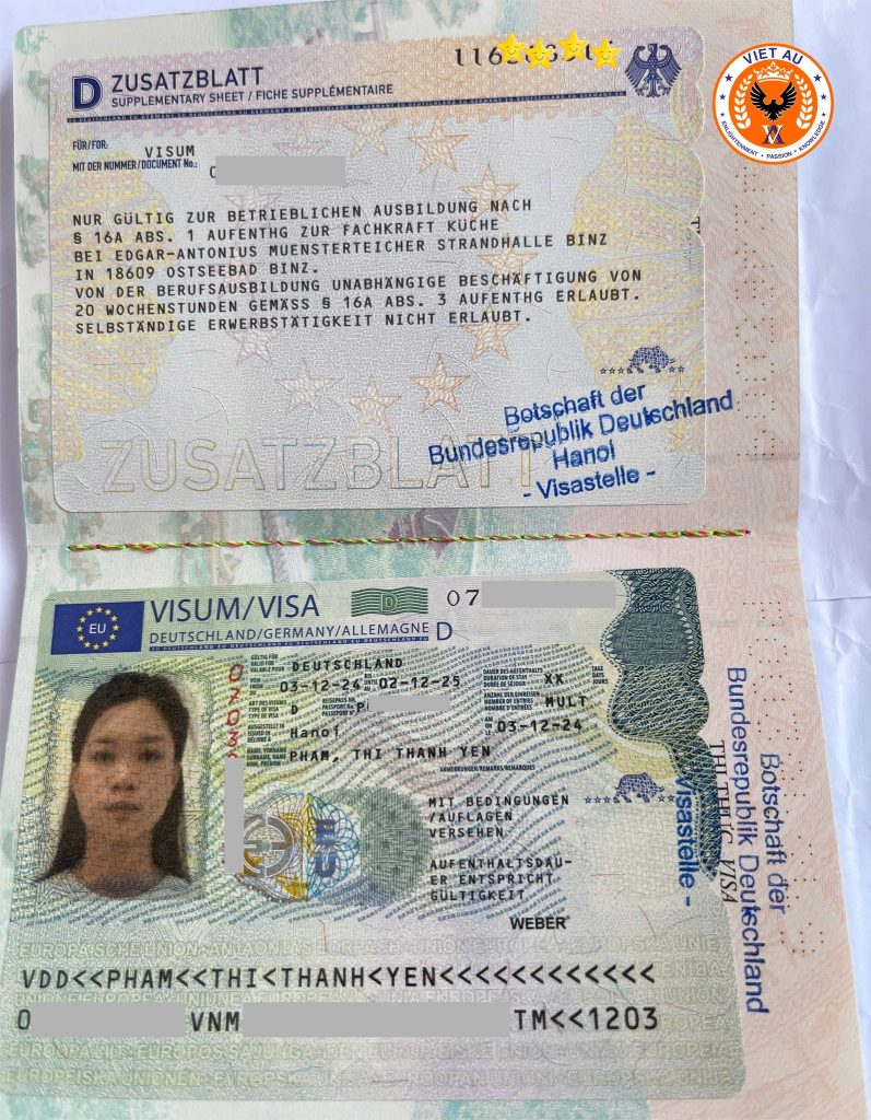 Chúc mừng Phạm Thị Thanh Yến đỗ visa du học nghề CHLB Đức ngành Nhà Hàng Khách Sạn.